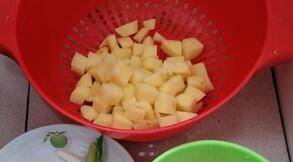 2、鸡腿肉切丁洗净,焯水捞出沥干水分。