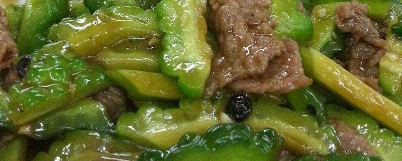 开始炒,放调和油,油热了后放蒜末和适量盐,然后放上凉瓜快速爆炒,其间放上料酒,过一会放上清水,鸡粉,然后继续爆炒,见凉瓜7成熟时放上糖与少量酱油,炒一会后可以放上瘦肉继续爆炒,注意此时要有水,见肉熟了,收干水分,之后可以上碟了。