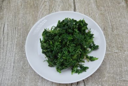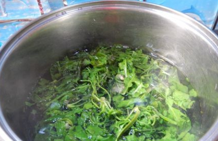 锅中烧开水,滴素油。荠菜焯水后捞出来过凉水;