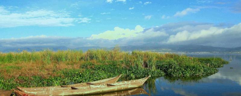 2、通海杞麓湖:杞麓湖位于通海县城北,风光绚丽,婀娜多姿,每当风平浪静,天空一碧如洗之时,湖面从东到西便出现一条长达数丈的湛蓝色带,古人称这奇景为“湖水拖蓝”,是通海八景之一。