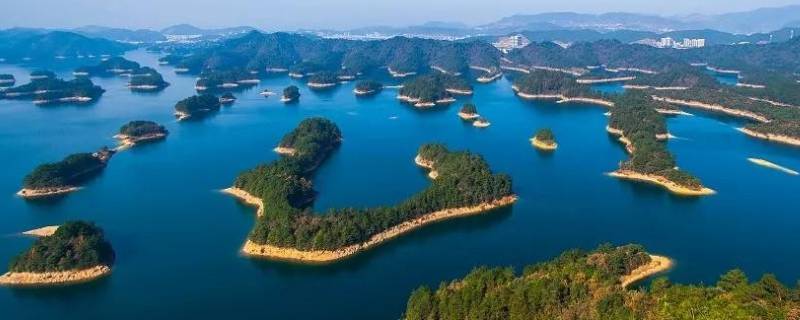 千岛湖在浙江省淳安县和建德市。千岛湖即新安江水库,是1959年新安江建德马铜官峡筑坝兴建水电站而形成的人工湖。新安江水库蓄水后未被淹没的山峰形成1000多个岛屿,因此得名千岛湖。千岛湖属国家一级水体,1982年被国务院确定为国家级风景名胜区。千岛湖景区总面积9.5万公顷,其中山地面积4.17万公顷,水域面积5.33万公顷,蓄水量为178亿立方米,湖内拥有星罗棋布的1078个岛屿,融山、水、林、岛于一体,风光秀丽。