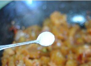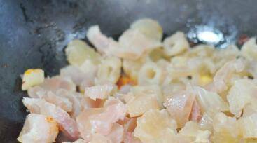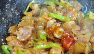 倒入熟的牛蹄筋炒香。