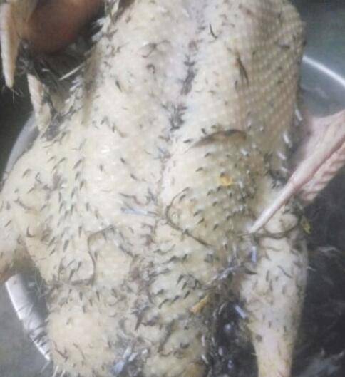 不然, 鸭毛孔遇到100℃的沸水后就要收缩, 鸭毛就不易拔脱了。