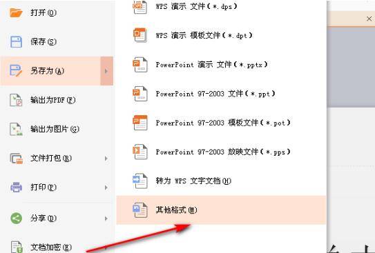 此时会继续弹出一个子菜单页面,点击最后面的其他格式选项。