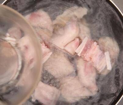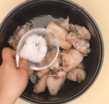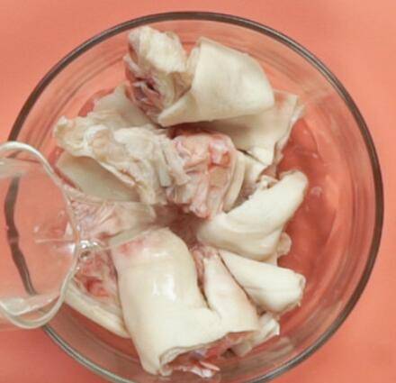 2、将猪蹄500克放入500ML水中浸泡3小时。
