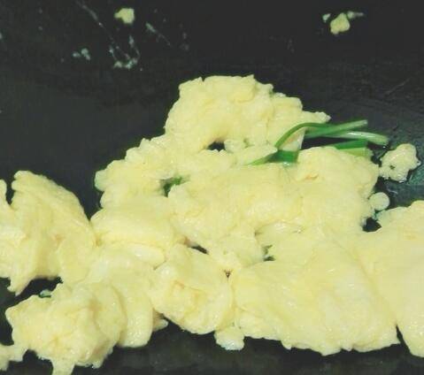 锅烧七成热,放适量花生油,油热后,把蛋液再搅拌一下,再快速倒进锅里,然后转动锅,让蛋液快速凝固。