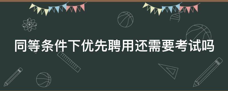 同等条件下优先聘用不一定需要考试。同等条件下优先聘用的政策指的是在招聘过程中,某些特定人群(如退伍军人、残疾人等)有优先录用的权利。这样的情况下,招聘单位通常不需要为这些人群举行考试,只需要经过一些其他程序(如面试、技能考核等)来确定是否录用。