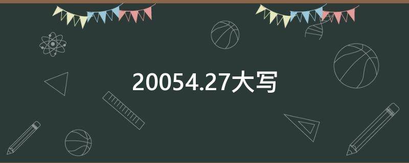 20054.27的大写是贰万零伍拾肆圆贰角柒分。大写数字是中国特有的数字书写方式。这种方式利用与数字同音的汉字取代数字,以防止数目被涂改。大写数字是劳动人民在长期的实践中发明出来的,武则天承袭了民间的写法,大量使用大写数字,使之广泛化、普及化。朱元璋出于国家对经济领域的整饬,下令在全国范围内大规模强制性实施完整的大写数字,从而完善并规范了大写数字的应用。大写数字多出现于银行的收据中,这样会有效的防止数字被涂改而伪造收据。