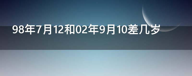 98年7月12和02年9月10差4岁。因为2002-1998=4,所以98年比02年大4岁。年龄指一个人从出生时起到计算时止生存的时间长度,通常用年岁来表示。年龄是一种具有生物学基础的自然标志,一个人出生以后,随着日月流逝,年龄也随之增长,这是不可抗拒的自然规律。人在进行自身再生产的同时,也进行着年龄的再生产,它总是由不同年代出生的不同年龄的个人所组成。此外,各种人口现象,如结婚、生育、求学、就业、迁移、死亡等,都与每个人的年龄密切相关,所以正确计算年龄具有十分重要的意义。