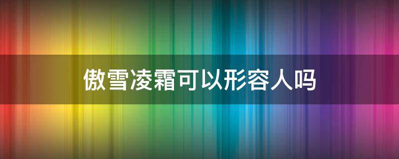 傲雪凌霜可以形容人,傲雪凌霜形容人能不惧严寒,秉持一身正气,比喻经过长期磨练,面对冷酷迫害或打击毫不示弱、无所畏惧。出自宋杨无咎《柳梢青》:傲雪凌霜,平欺寒力,搀借春光。成语,众人皆说,成之于语,故成语。成语多为四字,亦有三字、五字甚至七字以上。成语是中国传统文化的一大特色,有固定的结构形式和固定的说法,表示一定的意义,在语句中是作为一个整体来应用的,承担主语、宾语、定语等成分。
