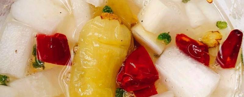 最佳答案1、准备食材:白萝卜半个、小米椒7个、糖5调羹、盐少许、醋半碗、生抽4勺、蒜7颗、姜少许。2、萝卜洗净,切条,用盐腌半小时,腌出水。3、碗里放辣椒、蒜、姜、糖、醋、生抽、拌匀。4、萝卜,腌出的水倒掉,放入调好的佐料,泡半天或第二天即可食用。