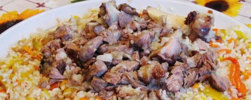 1、朴劳:朴劳是维吾尔族的一种美食,因用手指抓食,故汉语称之为“抓饭”。抓饭是用大米、羊肉、羊油、清油、洋葱、胡萝卜混合焖制而成,但并不是人们所说的“炒米饭”。它的做法是先用清油和羊油将切成块状的羊肉炒到七八成熟时,再放上洋葱、胡萝卜条合炒,然后加入少量水煮,并把泡了一阵的大米铺在上面,将锅封严,焖二十分钏即熟。吃时要把抓饭搅匀,盛在盘中,用手指握成勺形抓食,也可用勺子和筷子进食。