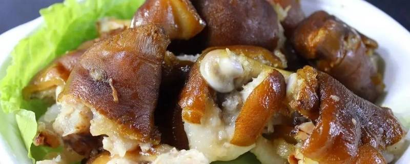 5、卤猪蹄:主要材料有猪蹄,花生,香料,香菜等,是我国典型的传统熟肉制品,猪蹄营养丰富,含多种胶原蛋白。