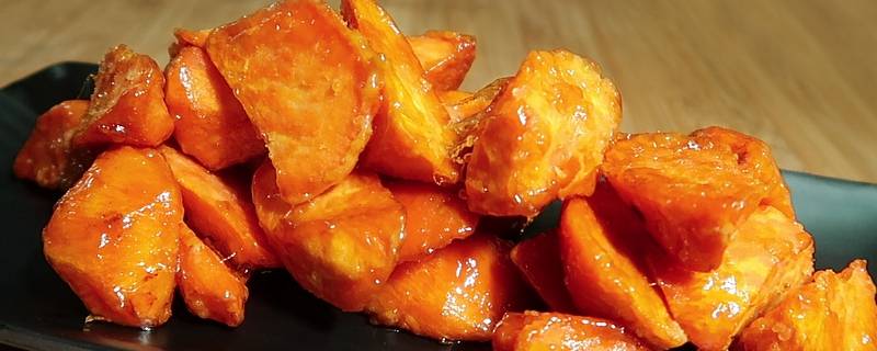 5、改中火倒入地瓜快速翻炒,让糖稀均匀裹在地瓜表面即可。