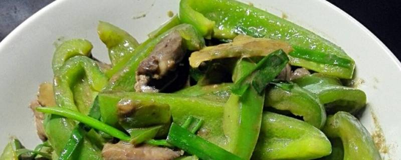 5、另下油,倒入圆椒和葱白翻炒,加水和盐,盖上锅盖,焖片刻后开盖,倒入鸡杂和葱段,快速翻炒均匀即可。
