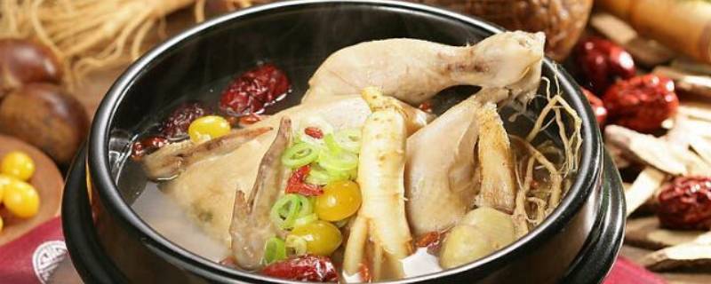 1、准备食材:乌鸡一只、高丽参几片、圆碗一个、姜片。