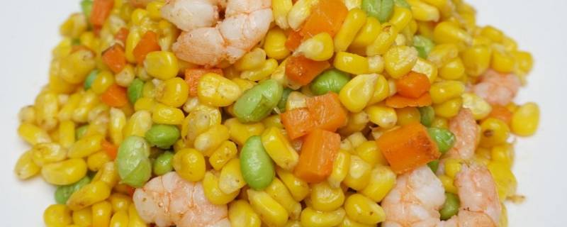 5、然后再把黄瓜火腿放下去炒,再倒入玉米粒,最后快起锅前放虾仁,适当的调下味就行了。