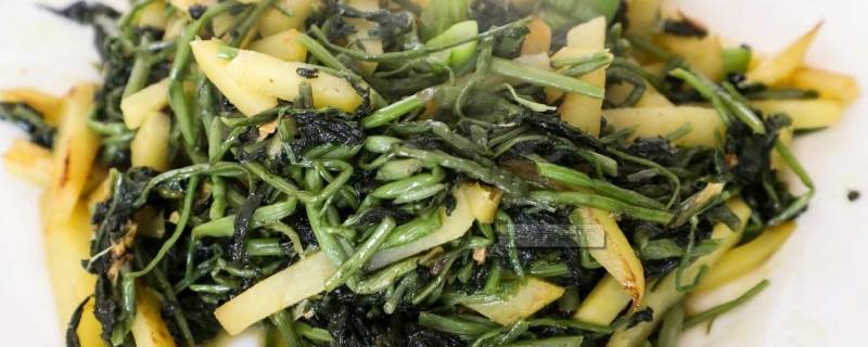 8、等大叶芹炒到九成熟的时候,调入盐,翻炒均匀。