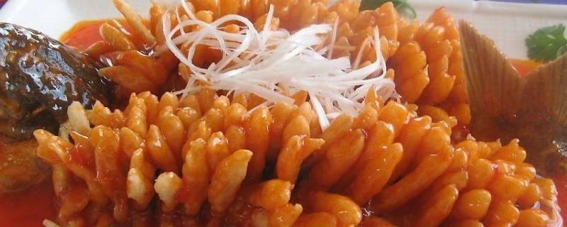3、松鼠湟鱼:用青海湖湟鱼烹制的菜肴。此菜刀工均匀整齐,烹制后鱼肉外翻如毛,鱼尾翘起,形如松鼠,故名之。具有色泽红亮,酸中带甜,外脆里嫩的特色。原料:湟鱼,精盐,料酒,面粉,白糖,醋,胡椒粉,辣面,姜粉。