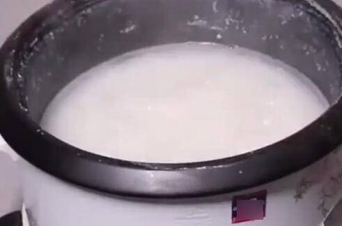 5、倒入适量的清水,大米和水的比例为1:3,如果用中指衡量,中指尖碰米面,水要到第一和第二手指关节中间就行。