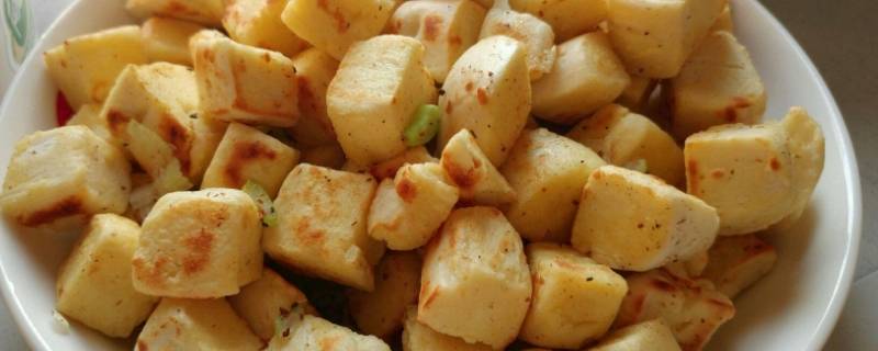 3、锅里放少量油,中火把馒头丁下去炒三分钟。