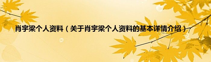 肖宇梁个人资料(关于肖宇梁个人资料的基本详情介绍)
