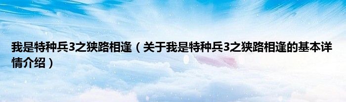 我是特种兵3之狭路相逢(关于我是特种兵3之狭路相逢的基本详情介绍)