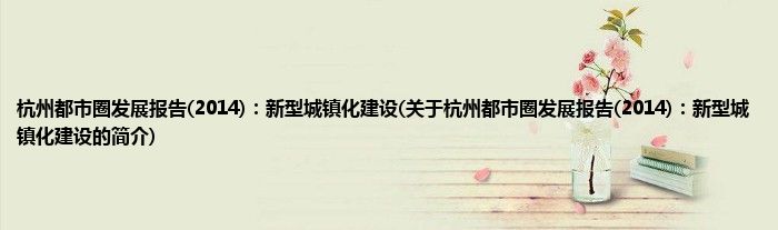 大家好,杭州都市圈发展报告,2014:新型城镇化建设,关于杭州都市圈发展报告,2014:新型城镇化建设的简介很多人还不知道,现在让我们一起来看看吧!