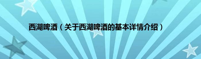 本文关于西湖啤酒的基本详情介绍就讲解完毕,希望对大家有所帮助。