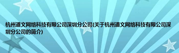 本文关于杭州道文网络科技有限公司深圳分公司的简介就讲解完毕,希望对大家有所帮助。