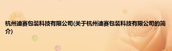 本文关于杭州迪赛包装科技有限公司的简介就讲解完毕,希望对大家有所帮助。
