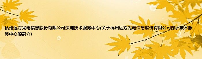 本文关于杭州远方光电信息股份有限公司深圳技术服务中心的简介就讲解完毕,希望对大家有所帮助。