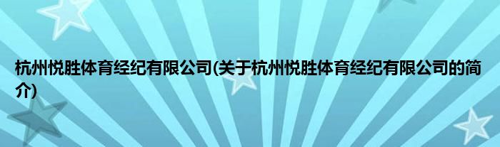 本文关于杭州悦胜体育经纪有限公司的简介就讲解完毕,希望对大家有所帮助。
