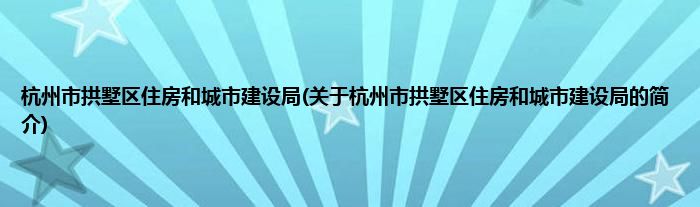 本文关于杭州市拱墅区住房和城市建设局的简介就讲解完毕,希望对大家有所帮助。
