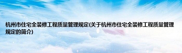 大家好,杭州市住宅全装修工程质量管理规定,关于杭州市住宅全装修工程质量管理规定的简介很多人还不知道,现在让我们一起来看看吧!