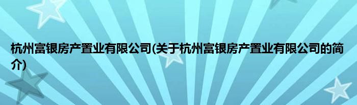 本文关于杭州富银房产置业有限公司的简介就讲解完毕,希望对大家有所帮助。