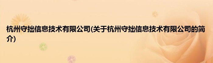 本文关于杭州守拙信息技术有限公司的简介就讲解完毕,希望对大家有所帮助。