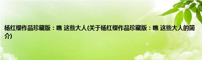 本文关于杨红樱作品珍藏版:瞧,这些大人的简介就讲解完毕,希望对大家有所帮助。