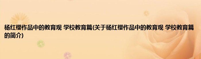 杨红樱作品中的教育观学校教育篇(关于杨红樱作品中的教育观学校教育篇的简介)