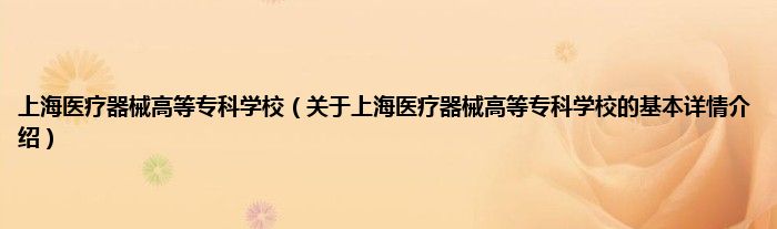 本文关于上海医疗器械高等专科学校的基本详情介绍就讲解完毕,希望对大家有所帮助。
