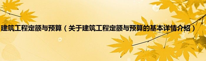 本文关于建筑工程定额与预算的基本详情介绍就讲解完毕,希望对大家有所帮助。