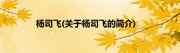 本文关于杨司飞的简介就讲解完毕,希望对大家有所帮助。