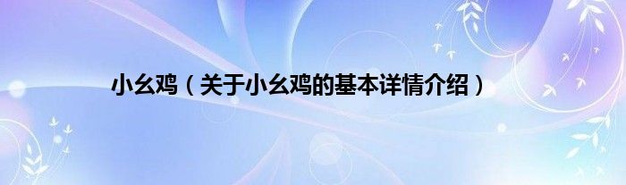 大家好我是小蝌蚪,小幺鸡,关于小幺鸡的基本详情介绍很多人还不知道,那么现在让我们一起来看看吧!