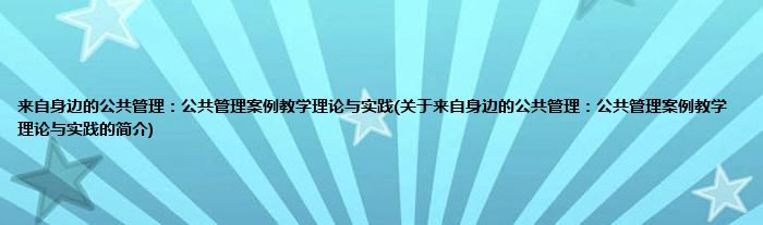 本文关于来自身边的公共管理:公共管理案例教学理论与实践的简介就讲解完毕,希望对大家有所帮助。