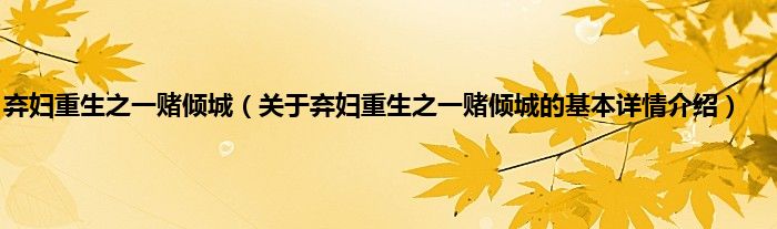 本文关于弃妇重生之一赌倾城的基本详情介绍就讲解完毕,希望对大家有所帮助。