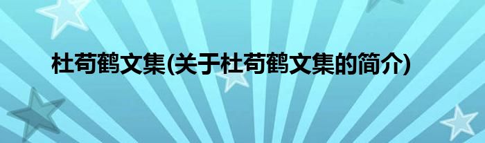 本文关于杜苟鹤文集的简介就讲解完毕,希望对大家有所帮助。