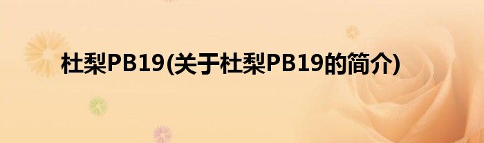 大家好,杜梨PB19,关于杜梨PB19的简介很多人还不知道,现在让我们一起来看看吧!