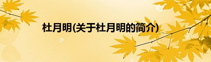 本文关于杜月明的简介就讲解完毕,希望对大家有所帮助。