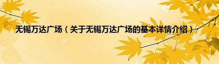 本文关于无锡万达广场的基本详情介绍就讲解完毕,希望对大家有所帮助。