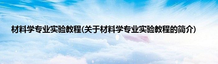 本文关于材料学专业实验教程的简介就讲解完毕,希望对大家有所帮助。